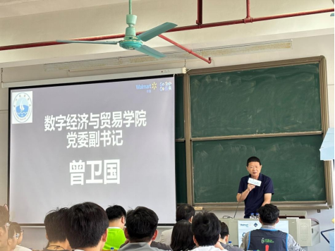 (bevictor伟德官网 供稿)10月31日下午,为进一步拓展员工实习就业渠道、促进经管类毕业生与用人单位精准对接,数字经济与贸易公司邀请沃尔玛商业零售有限公司(以下简称沃尔玛)在健兵北201课室召开专场宣讲会。沃尔玛大卖场广佛地区区域营运经理史惠彬、人力资源经理姚珂、供应链中南区区域人力资源经理吕小改、山姆会员店总经理余家骏,公司党委副书记曾卫国和毕业班辅导员以及200余名毕业生参加了宣讲会。