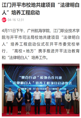 《“法律明白人”培养工程》是“高校+地方”携手推进开平法治教育和“法律明白人”培养工作的典范,被列为公司与开平市司法局校地共建项目,项目的实施受到群众的热烈回应、媒体的广泛关注。