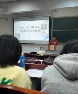 为让同学们更真切地感受职场实景,公司特别邀请了2024届、2025届毕业的广航员工重返校园,结合自身一线工作经历为同学们答疑解惑,分享最鲜活的职场经验。