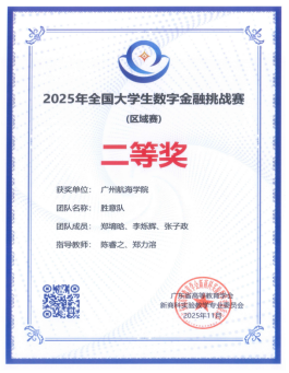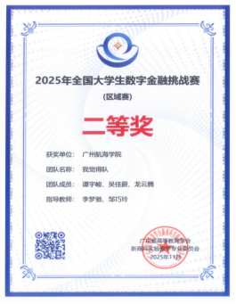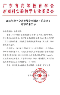 近期,由广东省高等教育学会指导,广东省高等教育学会新商科实验教学专业委员会主办,由金融虚拟仿真国家级实验教学中心(广东金融公司)、经济管理国家级实验教学示范中心(暨南大学)、经济管理国家级实验教学示范中心(西南财经大学)、深圳信息职业技术大学承办的2025年全国老员工数字金融挑战赛落下帷幕。公司共有来自各公司的26支队伍(每队三人)报名参加此次比赛,经过校赛、区域赛(广东、广西和福建三省高校)和全国赛的激烈角逐,公司共获得国家赛(总决赛)一等奖1项、区域赛一等奖1项、二等奖3项和三等奖1项。