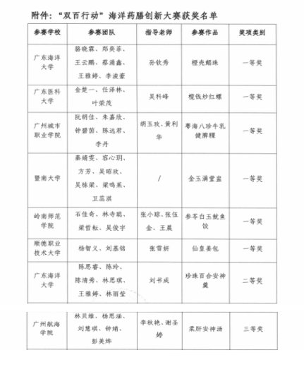 本次海洋药膳创新大赛紧扣海洋强国、健康中国战略及“百千万工程”部署,由广东省“双百行动”乡村产业发展高校联盟、广东医科大学联合主办。大赛自启动以来,吸引了省内近140支师生团队踊跃参与,竞争十分激烈。经过多轮评审,大赛最终评选出优秀奖20名、三等奖15名、二等奖9名、一等奖6名。