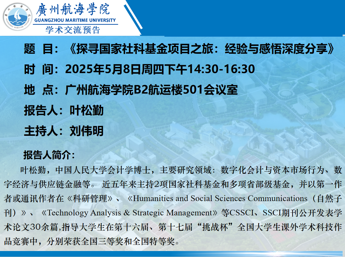 学术讲座预告:叶松勤《探寻国家社科基金项目之旅:经验与感悟深度分享》