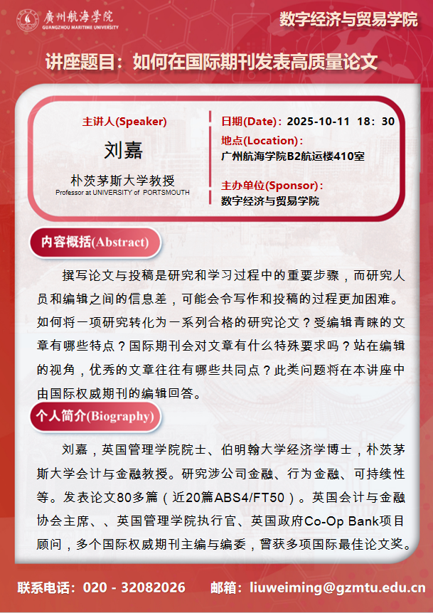 学术讲座预告:刘嘉《如何在国际期刊发表高质量论文》