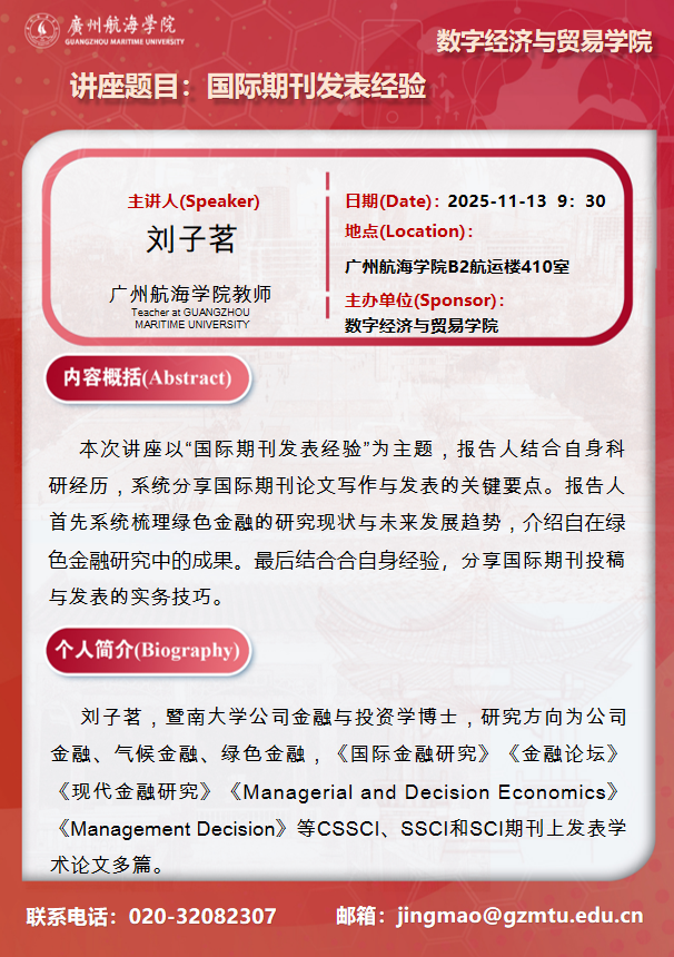 学术讲座预告:刘子茗《国际期刊发表经验》