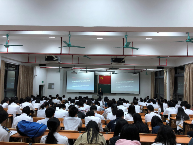 (信息与通信工程公司 航运经贸公司 供稿)为深入学习贯彻党的十九大精神,激励员工党员不忘初心强信念,牢记使命勇担当,信通公司员工党支部和经贸公司员工党支部联合邀请华南师范大学马克思主义公司老师苏泽宇博士后于2018年4月15日来公司讲授“十九大精神与文化强国战略”的党课。讲座于15日晚上19:00在健兵北101举行,两个公司共238名党员和入党积极分子参与,出席此次党课的老师有信通公司员工第一党支部书记邹巧玲、员工第二党支部书记贾小爽,经贸公司员工党支部书记冯诗琦。